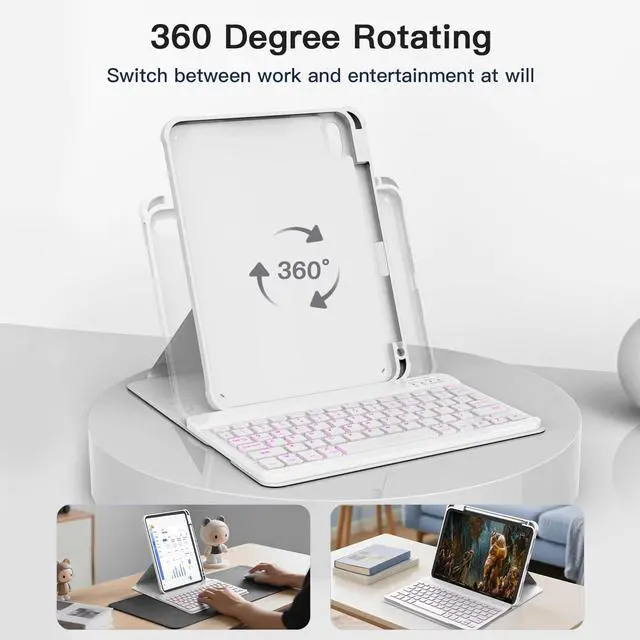 Adjustment: Enjoy ultimate flexibility with 360 rotation for portrait/landscape mode and 3 adjustable angles (110/120/130). Perfect for work, drawing, or streaming switch seamlessly between tasks. ^^ Detachable Backlit Keyboard with 7