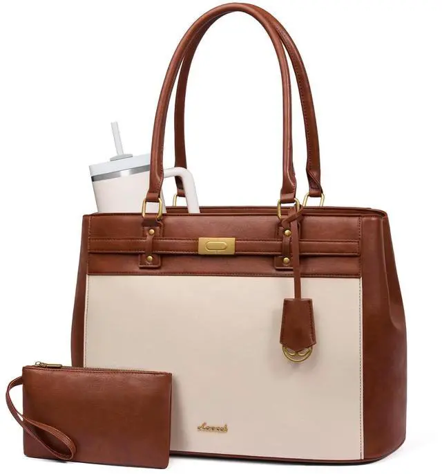 ELEGANT AND STYLISH DESIGNThe LOVEVOOK laptop bag features a classic strap design paired with an elegant pendant, showcasing a timeless fashion style. With clean lines and segmented panels, it combines a sleek look with thoughtful design, making it suitable for various occasions such as commuting, business trips, leisure, and casual social events ^^ DEDICATED STANLEY CUP POCKETThis tote bag for women features an elastic-designed side pocket inside, allowing easy storage and secure placement of large cups like the Stanley 40 oz. It effectively prevents accidental liquid spills and protects important items such as laptops and documents, it is ideal as stanley cup accessories ^^ ULTIMATE ORGANIZATION HANDBAGStay effortlessly organized with this tote bag, where every item has its designated spot.