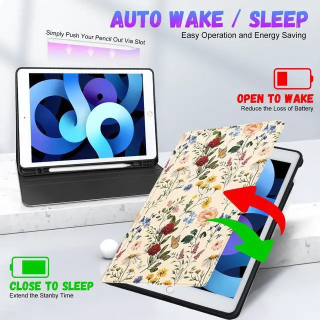 Full Protection This for apple ipad 9th generation case, for ipad 8th generation case, for ipad 7th generation case is made of premium durable PU leather and soft TPU. So this for 9th generation ipad case, for ipad case 8th generation, for ipad case 7th generation is stain resistant, the high-definition printing process makes it less likely to fade. ^^ Auto Sleep/Wake Built-in magnetic strip, this for ipad cover 9th generation, for 7th generation ipad case, for 8th generation ipad case with the smart funtion of auto sleep/wake, no wasting the power energy and extend your iPad standby time.