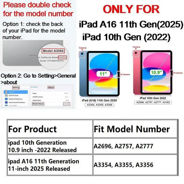Specially designed for 10.9 inch 2022 iPad 10th Generation, for iPad 11th Generation (A16 11 inch 2025) - including the following