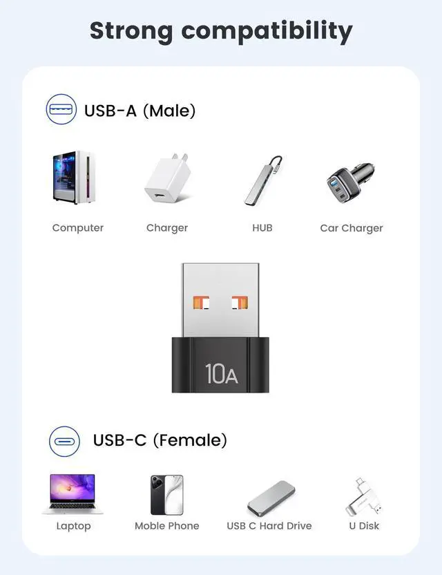 ^^ [Widely Compatible]: USB A ports compatible with laptops, computer, chargers and car charger with USB A to USB C ports compatible with iPhone 16/15 Pro Max, iPad Pro iPad Air iPad mini 7 6, Apple Watch iWatch Series SE 7 8 Ultra, AirPods Pro 2 3, Google Pixel and other Type-C supported devices. ^^ [What You Get]High quality USB C to a adapter (male to female), each pack contains 20 units, You can place them at home or in the office for backup, enough for you use for a long time