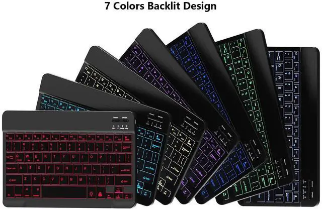 Time: about 4 hoursThis keyboard features 7-color backlight mode, 1 breathing backlight mode, and 3 brightness levels. You can turn on/off the backlight mode and adjust the backlight mode through "light bulb" key. You can adjust the backlight color (blue, green, ice blue, purple, red, white and yellow) through "RGB" key. You can simultaneously press the "light bulb" key + the "" arrow key to increase the backlight brightness. You can simultaneously press the "light bulb" key + the "" arrow key to decrease the backlight brightness. Backlight mode will run out of power faster. You can reduce the backlight brightness or turn off backlight mode to extend the battery life. How to Pair the
