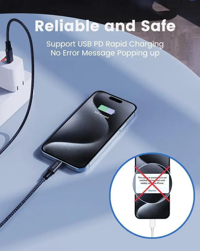 2Pack Super Long iPhone 17 16 Series Fast Charger Cord16FT/5M NylonPD Fast ChargingSupports high-speed PD charging for your Apple 17 16, 2.5 faster than USB A iPhone 17 16 cable. Safe Data TransferSupports data transmission up to 480Mbps, ensures the safety of your Apple devices to easily transfer music, files, pictures and videos between iPhone and MacBook. Nylon Braided iPhone ChargerThe 16 feet extra long iPhone 17 16 charging cord has a durable nylon braided design, sturdy nylon fiber cover makes the cable more durable, bendable, and makes it has extremely high resistance against wear and splitting, and gives it a more stylish and elegant appearance.