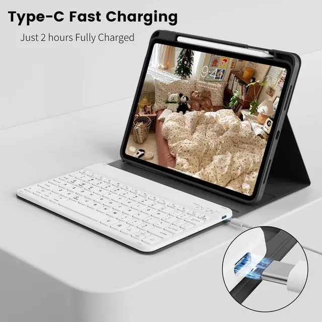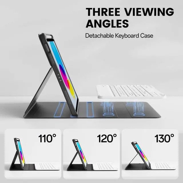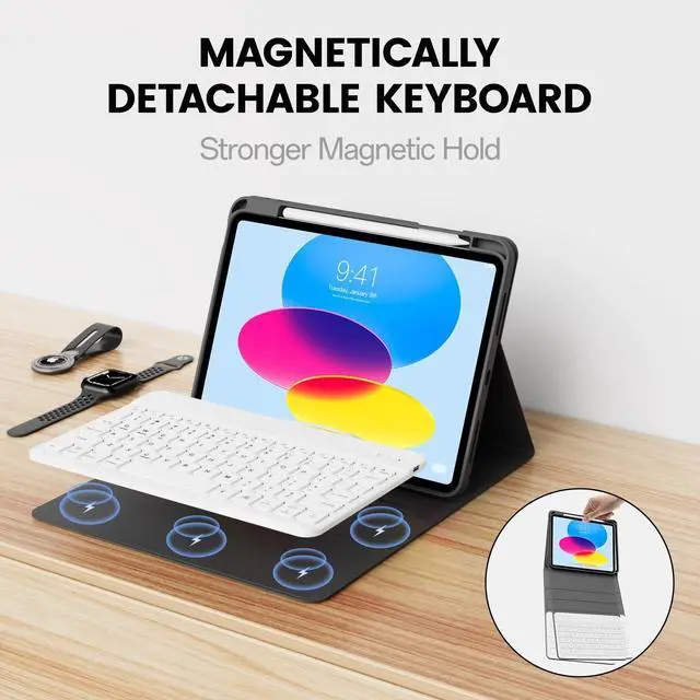Perfectly fits models: A3354, A3355, A3356, A2696, A2757, A2777. Not compatible with any other iPad models. Please verify the model number on the back of your iPad to ensure a perfect fit. ^^ Slim Magnetic Bluetooth KeyboardExperience the ultimate versatility with our detachable, ultra-slim ( 6.2 mm) keyboard that attaches wirelessly via powerful magnets. Instantly convert your iPad into a portable laptop for work, study, or entertainment. Effortlessly compatible with iOS, Android, and Windows, The ipad a16 case with keyboard is your all-in-one productivity powerhouse. ^^ Long-Lasting Battery & Multiple Viewing AnglesThe rechargeable keyboard boasts a long-lasting Li-polymer battery. Enjoy up to 3+ days of standby time on a single, quick charge. The durable folio case allows you to set your iPad at multiple secure angles for the most comfortable typing, browsing, and video-watching experience. ^^ Built-in Pencil Holder & Durable PU MaterialThe ipad 10th generation case with keyboard features a convenient built-in pencil slot on the right side for easy storage and access (Apple Pencil not included). The premium PU leather cover is waterproof, scratch-resistant, and fingerprint-resistant, providing full protection for your iPad a16.