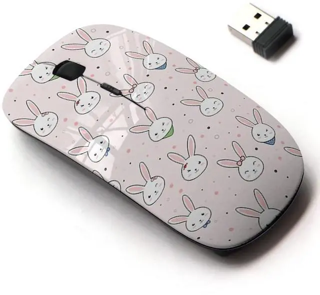 CJCBROES 2.4G Wireless Mouse with Cute Pattern Design for All Laptops and Desktops with Nano Receiver - Cute Adorable Kawaii Rabbit Bunny