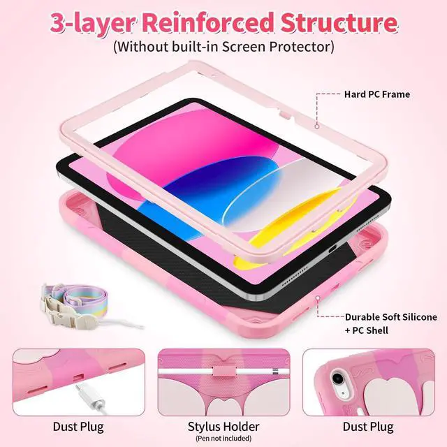 Portable & Detachable Shoulder Strap: This for iPad 10th generation case/iPad A16 case is equipped with an adjustable and detachable shoulder strap, which makes it more convenient to carry on the go, tablet cover freeing up your hands, suitable for commuting, travelling and other scenarios.