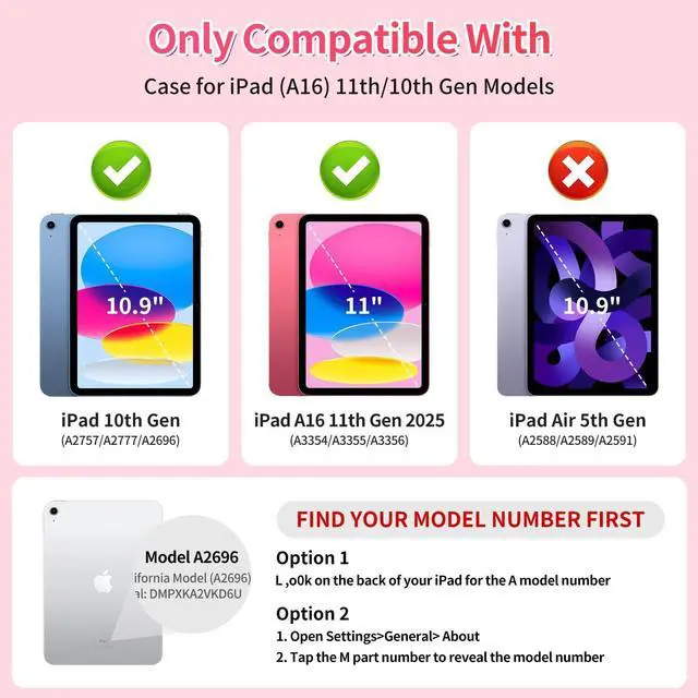 Perfect compatibility: Designed to fit for iPad 11th generation 11-inch (model 2025, A3354/A3355/A3356) and for iPad 10th generation 10.9 -inch (model 2022, A2696/A2757/A2777) perfectly.