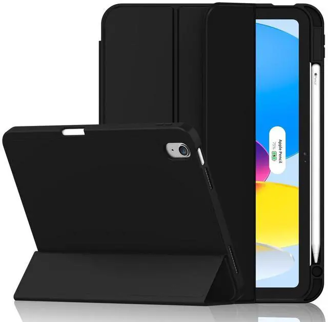 iMieet Case for iPad (A16)/iPad 10th Generation [11-Inch 2025/10.9 Inch 2022], Trifold Stand Smart Cover with Pencil Holder and Soft TPU Back, Supports Touch ID(Black)