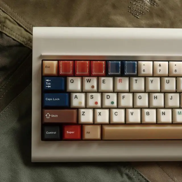 Seven-color PC transparent keycapsThis set of keycaps is made of high quality PC material and advanced printing technology, the RGB will not glow through the lettering but will glow through the keycaps, creating a retro neon like effect, adding a stylish ambient light feeling to your keyboard, making it distinctive and vibrant ^^ The texture of jadeKeycaps come in a variety of colors, vintage style and mixed light design make each keycap very eye-catching. The keycaps have been specially processed to present a jade-like texture, providing you with a very comfortable keystroke feel ^^ Cherry Profile KeycapsThese vintage mixed-light themed keycaps feature the classic Cherry Profile design, a stepped arrangement of keycaps that provides the ultimate typing experience for every keycap enthusiast.