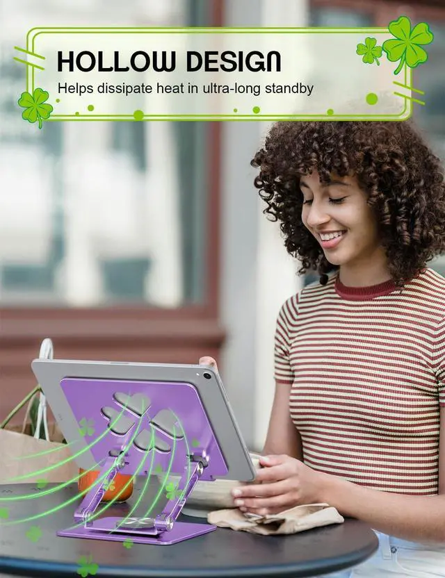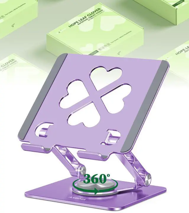 Stand: This iPad stand features a 360 rotating base, letting you easily switch between landscape and portrait modes. Perfect for video calls, meetings, and online learning, it enhances your desk setup with flexibility and convenience ^^ Four-Leaf Clover Tablet Stand -