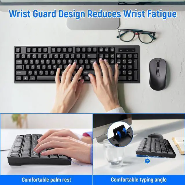 & Play: Stable 2.4G Wireless Connection] With advanced 2.4GH z wireless technology, Typ-c and USB-a 2-in-1 receiver, simply plug the USB port receiver into a USB port (or Typ-c port receiver into a type-c port if it is a type-interface device) to connect the wireless keyboard and mouse to your computer. No additional drivers or software are required. No additional drivers or software are required. Fast and stable data transmission, no delay or dropout, working range up to 33 feet. ^^ [Thin and lightweight keyboard] QWERTY wireless keyboard is made of ultra-thin ABS plastic body, which is space-saving and easy to carry. The streamlined design of the keyboard and wireless mouse set matches perfectly with your desk, and the light and sensitive touch of the keys makes typing gentle and comfortable.