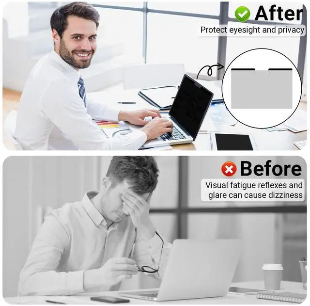 Protect your vision and secure your privacy! This magnetic privacy screen creates a private digital fortress for you! Whether you're working in a cafe, handling confidential documents on a plane, or busy in an open-plan office, do you ever worry that others might catch a glimpse of your screen? Say goodbye to the anxiety of screen peeping! This magnetic privacy screen protector, specifically designed for laptops, combines powerful physical anti-peeping protection, efficient blue light filtering, comfortable anti-glare, and convenient magnetic adhesion, making it your professional guardian for data security and visual health!