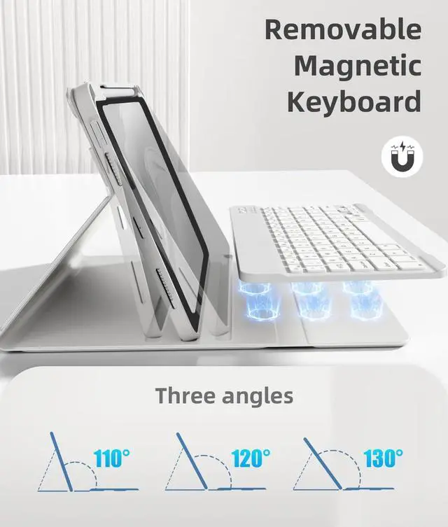 Magnetic Detachable Keyboard: The iPad 11th generation case with keyboard features a magnetic snap-on, compatible with iOS, Android, and Windows tablets. Easily detach for tablet-only use or reattach securely. Hassle-free Bluetooth pairing ensures instant, responsive typing ^^ 3