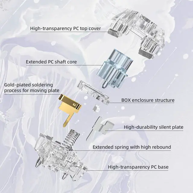 Features a fully transparent housing and stem, meticulously designed to maximize RGB light diffusion. It creates an exceptionally vibrant and uniform glow, transforming any keyboard into a stunning visual spectacle for gamers and enthusiasts.