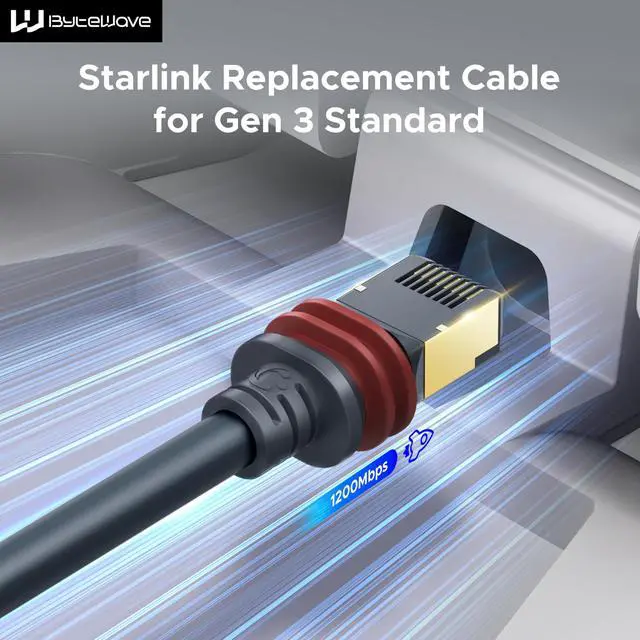 [OEM Standards and Beyond] Crafted from 24AWG Cat 5e copper stranded wire and exceptional interference PVC jacket. Supports data transfer speed up to 2000mbps. Manufactured to meet original Starlink standards and remains durable and flexible even after prolonged use. Spares your trouble of constantly changing cables. ^^ [No Red Part, No Hassle] Features a unique different color design with special red waterproof gasket serves as a usage reminder. Ensures full insertion of Ethernet connector for reliable connection and stable use. When the red part is not visible, the connection is perfect and ready for uninterrupted data transmission.