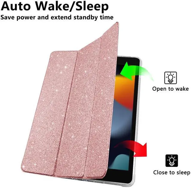 Model: A2602, A2603, A2604, A2605 ), iPad 8th Generation 2020 ( A2270, A2428, A2429, A2430 ), iPad 7th Generation 2019 ( A2197, A2200, A2198 ). Please check the back bottom of your iPad to find the model number before purchasing ^^ [ Clear Back and Glitter Cover ] The protective case is made of gorgeous and colorful fabric with shiny sequins that match the rich colors. The glitter on the surface is smooth to the touch and will not lose glitter. This case is suitable for family, kids and friends. The crystal clear back cover can be used for DIY decoration ^^ [ Built-in Pencil Holder ] Easily store and remove your Pencil. A special slot for placing the USB adapter. Easily to carry your iPad pencil with your device and allow you to grab them effortlessly (Pencil and USB Adapter NOT Included) Available in a variety of classically wonderful different styled ipad case ^^ [ Precise Cutouts ] Perfectly aligned cutouts for easy access to speakers, buttons and other ports. With built-in magnets, magnetic smart cover supports automatic sleep/wake function ^^ [ No Worries After Sale ] Includes TopPerfekt lifetime warranty.