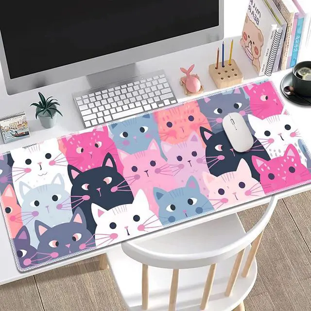 Large Gaming Mouse Pad Non-Slip Keyboard Pad Soft Extended Desk Mat Desktop Writing Pad (31.5"11.8") Combined with Coasters, Home and Office Desktop Decor, Cute Kitten