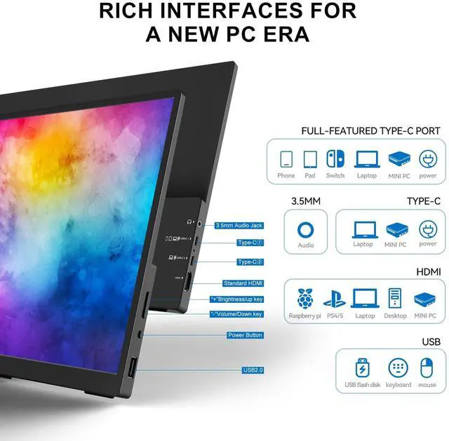 (Note: Your device should support type-c 3.0 ) can be connected not only to a computer for office use, but also to mobile phones, game consoles, etc ^^ Lightweight and slim, ideal for travelAs a portable external monitor, at just 1.4 pounds, it not only fits easily in every suitcase and backpack, but is also stress-free when you hold it for long periods of time. They are true portable laptop monitors for travelers, students, gamers, engineers, and everyone. ^^ The second display screenThis portable display for work and play brings a clear second screen to your meetings through multiple modes, such as copy mode, expand mode, etc., copy your screen anytime, anywhere, and improve work efficiency. Working at the same time can also be extended to other modes, Such as watching movies, to achieve the use of variety. ^^ Customer SupportIf you have any questions about our products, please feel free to contact our customer support.