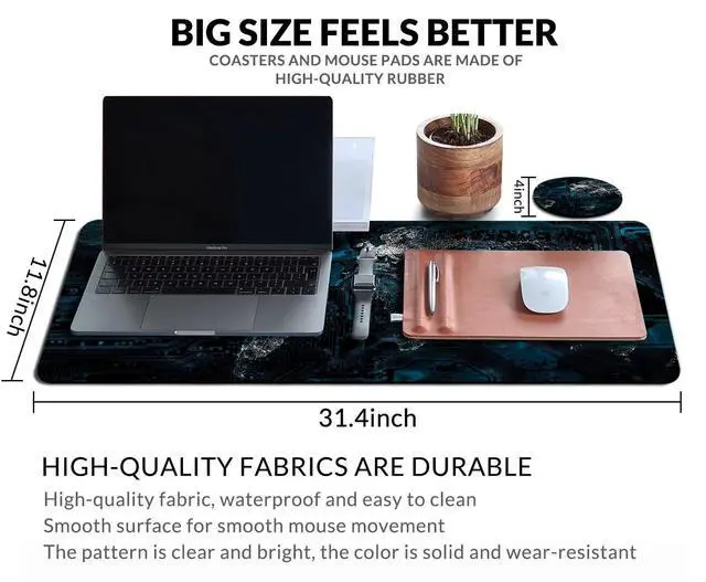 • Extended Large Mouse Pad Size : 31.5 x 11.8 inch (80 x 30 cm).with a Cup Coaster