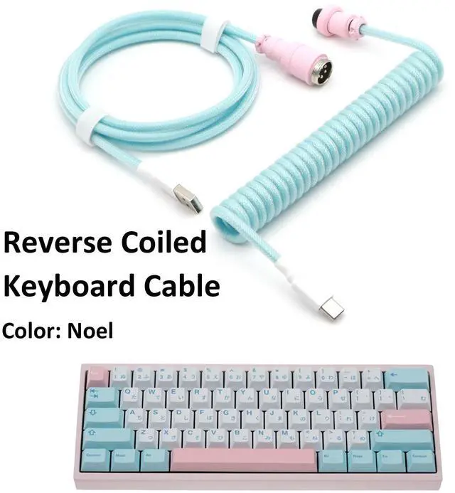 KCSJXF Reverse Coiled USB-C Keyboard Cable, Double-Sleeved Mechanical Keyboard Cable with Detachable Metal Aviator, 5FT USB-C to USB-A (Noel)