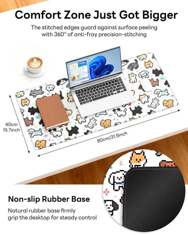 Non-slip Rubber Base: The soft & thick rubber backing has a dense non-skid texture, keeping your desk mat firmly in place. This oversized mouse pad stays uniformly flat on imperfect surfaces. Immerse yourself in work or games without annoying mat movement ^^ Easy to