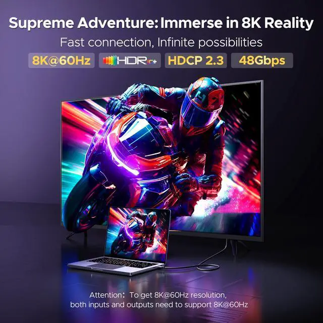 Resolution: Our USB-C to 8K HDMI Cable leverages cutting-edge technology, supporting up to 8K@60Hz, 4K@240Hz/120Hz, and 2K@240Hz. Dive into visuals that are four times more detailed than 4K, capturing every subtlety. Ideal for both high-octane gaming and cinematic immersion, this cable propels you into the future of entertainment. Make sure both input and output devices support 8K@60Hz. This USB-C to HDMI Cord is designed for the latest GPUs and CPUs, ensuring compatibility with Nvidia RTX 3000, AMD Radeon RX 6000, and Intel Iris Xe graphics for outstanding performance. ^^ 48Gbps