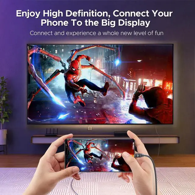 ^^ Robust and Reliable: This USB Type-C to HDMI cable features a sturdy and durable aluminum casing that extends its lifespan. It effectively shields against electromagnetic interference, ensuring stable and clear signal transmission while facilitating heat dissipation. Equipped with a high-performance chip, this Thunderbolt 5 to HDMI cable protects against EMI interference and guarantees secure, noise-free, high-speed data transmission. Additionally, the braided nylon cable enhances durability, and the strain relief design makes plugging and unplugging easier.