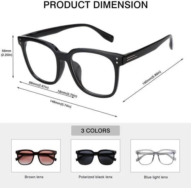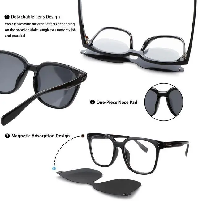 Magnetic Clip-On Lenses: Seamlessly switch between blue light blocking and polarized sunglass lenses, helping vision and eye protection in situation.
