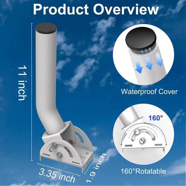 Heavy-Duty Steel Size: 12'' (Length) - 1.38" (Diameter). Made from high-quality steel, this outdoor J pole mount provides a secure installation for your outdoor point to point wireless bridge. Its robust design ensures stability when mounted on roofs, walls, or poles, delivering reliable performance ^^ Easy and Adjustable Installation Setting up this J-Pole Mount for outdoor point-to-point wireless bridge is simple. Attach the J-pipe to the included bracket, affix it to your desired surface, and easily adjust the angle to find the perfect position for optimal signal reception ^^ Universal Mounting Bracket This adjustable j-pole mount works with all types and brands of networking devices, antenna. Perfect outdoor Access Points, Wireless Point to Point, WiFi Bridge, TV/AF Antenna, 4G/5G CPE, Weather Stations, Starlink wifi extender ^^ Sturdy and Reliable With its sturdy construction and reliable performance, this universal antenna pole mount for outdoor access point provides a safe and secure platform for your outside device ^^ Sleek and Discreet Design With its compact profile, this J Pole Mount Bracket for wifi extender is designed to blend in with your environment, maintaining the aesthetic appeal of your home or building.