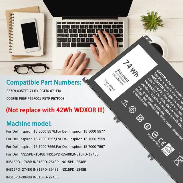Compatible Part Number: 357F9 0357F9 P57F P57F003 P65F P65F001 0GFJ6 71JF4 0GFJ6 00GFJ6 071JF4 INS15PD ^^ The new battery is CE safety certified and has strict compatibility guidelines. It's a brand new product from the manufacturer that can support up to 1, 000 charge cycles ^^