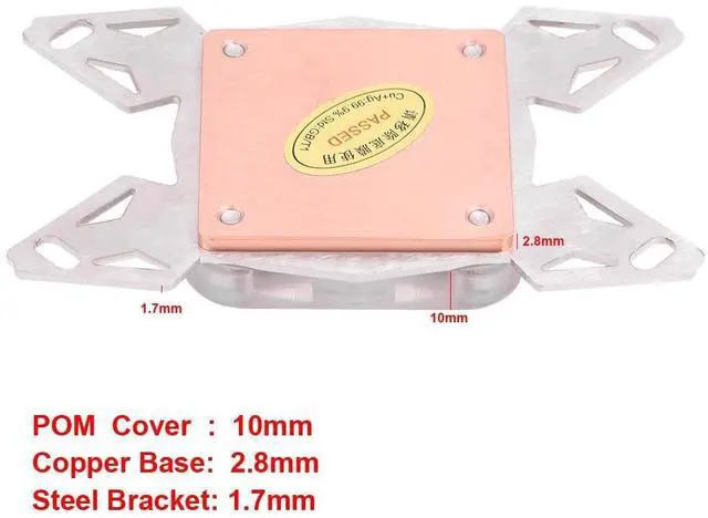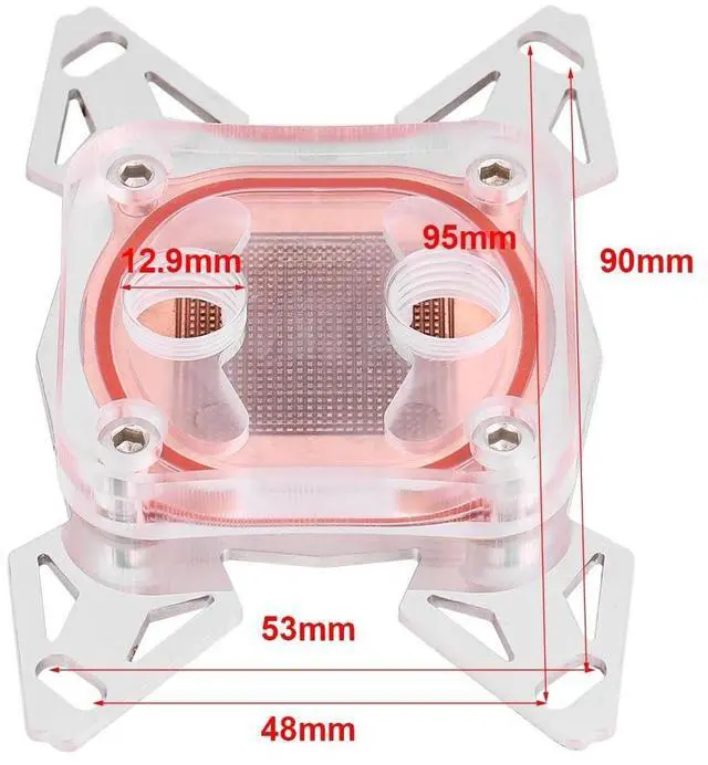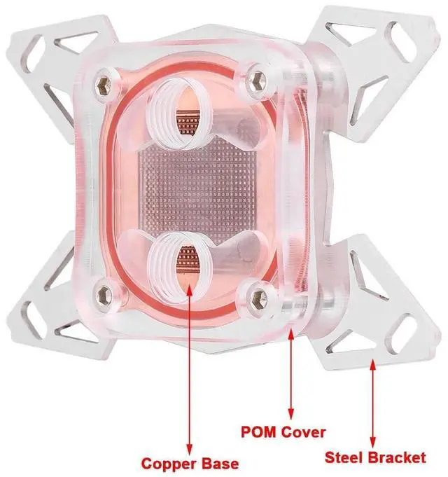 Universal CPU Water Cooling Block computer CPU water cooling block with POM cover for AM4. ^^ Fast Heat DissipationThe water area is large, thus it can carry more heat from the CPU quickly. ^^ Easy to ConnectIt has two connectors. The external diameter of the connector is 12.9 mm. ^^ G1/4 ThreadThe thread is international general G1/4. It has inner water channels. ^^ Professional suitable for AM4. ^^ ^^ ^^ ^^ ^^
