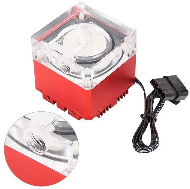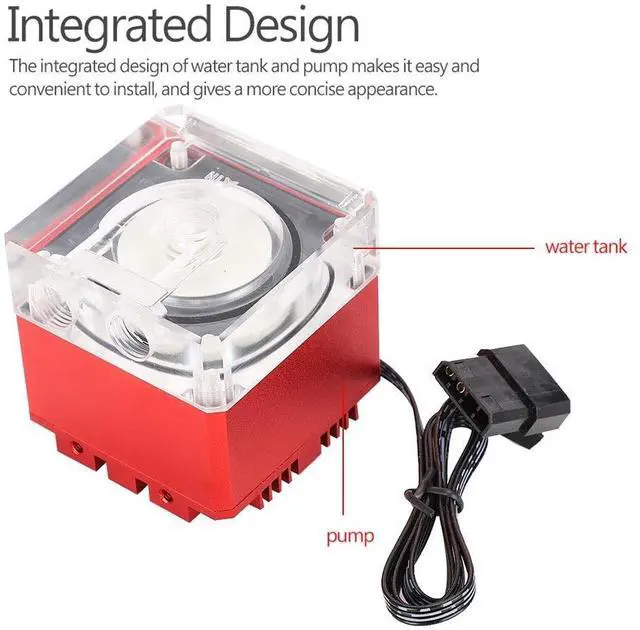 Description: This computer pump adopts high speed up to 800L/H and long pump head up to 3.5 meters to achieve fast heat dissipation, thus creating a stable and smooth internet connection and lengthening the service life of computer. The integrated design of water and pump makes it easy and convenient to install, and gives a more concise appearance.