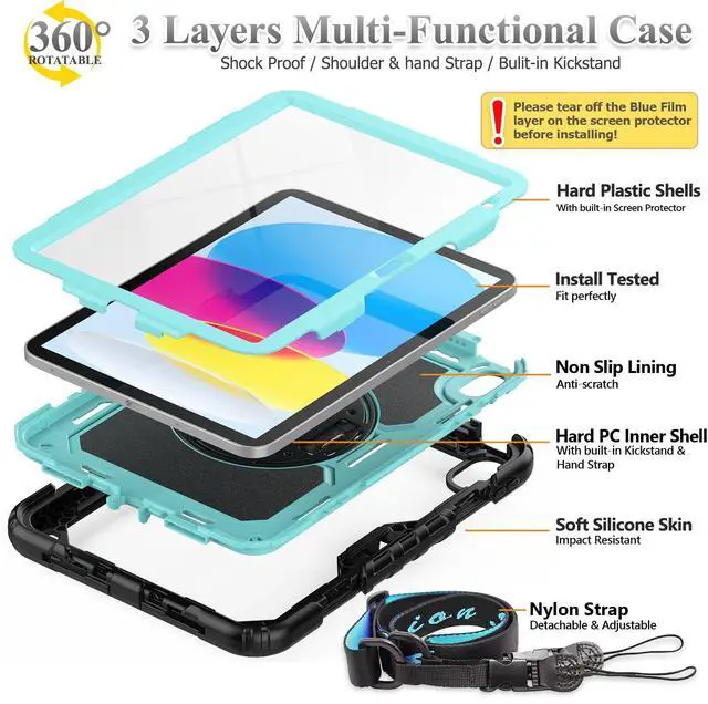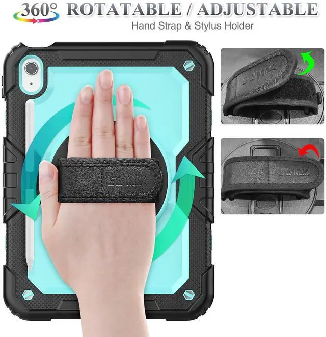 Generation 11-inch/ 10.9 -inch (Model: A3354/A3355/A3356 A2696/A2757/A2777) 2025/2022 Release. Please confirm your iPad model before purchase ^^ Full Protection+Screen ProtectorWith SEYMAC Stock Shock-absorbing protect Technology, to create the full-body protection for your iPad A16 against hits, drops, shocks and bumps. With built-in screen protector. Not only shockproof/long-lasting but also comfortable hand feeling ^^ Rotating Hand Strap / Stand Provide the securest protection and more convenience when you play or work with ipad a16 11th/10th generation. Its 360 Rotating Kickstand can provides 30-45-60 viewing/drawing/video/typing angles. With soft handle strap, easier to use your tablet at home or outdoor working, studying, gaming with kids &adults ^^ Portable Shoulder StrapThe strap keeps your iPad a16 11th/10th generation away from dropping broken, port plugs of the case prevents dust from entering. With pencil holder. Easily carrying device by hanging it anywhere while walking, hiking, driving, traveling or entertaining activities outside ^^ SERVICES SEYMAC Stock iPad case offers 6 months maintenance or replacement service for product defects. If you encounter any problems or concerns during use, such as size mismatch, installation guide, return or exchange, product damage, etc.