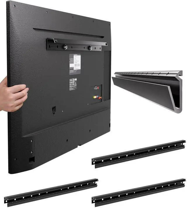 Even if you're renting or using your own home, you can easily mount it to the wall with just a hammer ^^ Heavy Duty SteelWall mount tv bracket is made of upgraded heavy duty alloy steel, which is durable and sturdy, The no stud tv wall mount can security fix your TV and monitor, bearing up to 150 lbs ^^ Space-Saving DesignTV hanger wall mount can place your TV only 1 inch away from the wall, creating an ultra-thin and low-profile modern and neat appearance, improving your space utilization