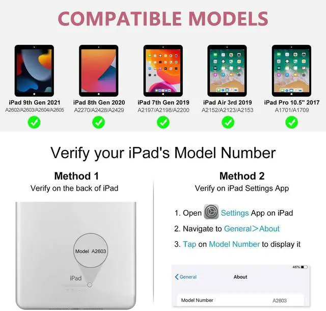 Air 3 (Models: A2123 / A2152 / A2153), and the 2017 10.5 -inch iPad