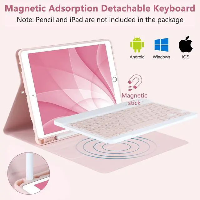 ^^ MAGNETIC DETACHABLE: This iPad 7th generation case with keyboard includes a Bluetooth keyboard with a magnetic design, allowing you to securely attach it to the case without worrying about it moving. In less than a second, your iPad can be transformed into a laptop, unlocking even more exciting ways to use your iPad. The convenient design allows you to carry your tablet anywhere without bulk.