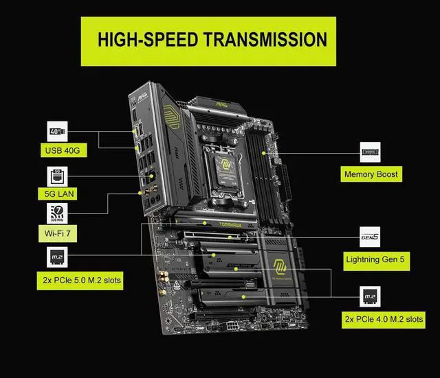 Lightning Fast Game experience: PCIe 5.0 slot, Lightning Gen 5 x4 M. 2; /
