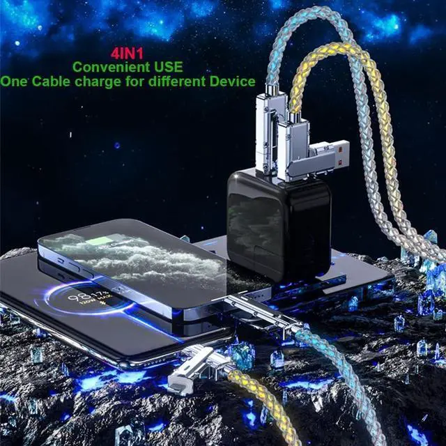 Current Flowing: Charging cable shows beautiful RGB LED light flowing, bring the most comfortable visual experience to you. RGB Streaming light stays on will shine your room or car, this cable can be used as a night light. ^^ 2.