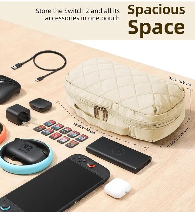^^ Compact & Portable: Measuring 12.67. 093.54 in/32189 cm, the Switch 2 bag easily fits into the backpacks or suitcases. The soft handle makes it convenient to carry. Perfect for daily storage, commutes, or long travel days.