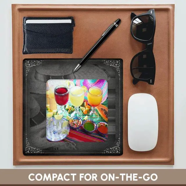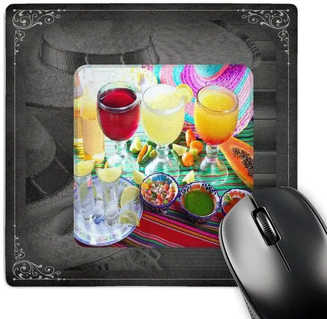 Drinks - Mexican style mouse pad is 8" x 8" x 25" and is made of heavy-duty recycled rubber. Matte finish image will not fade or peel. Machine washable using a mild detergent and air dry.