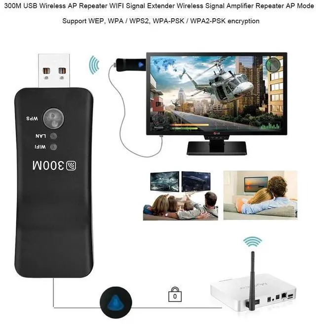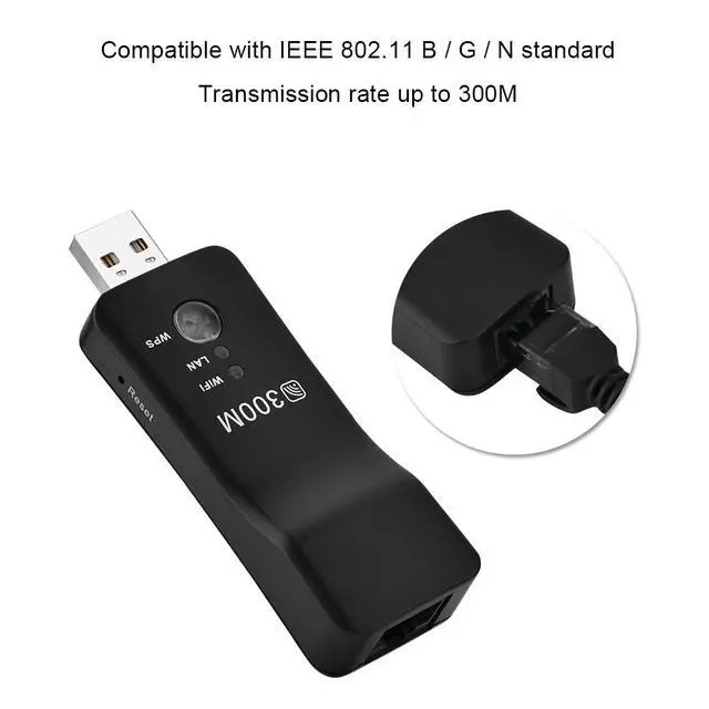 Power supply by USB interface. ^^ Two kinds of setting ways: wired and. ^^ rate 300M. ^^ Support WEP, WPA / WPS2, WPA-PSK / WPA2-PSK encryption. ^^ Convert to Ethernet with a RJ45 port ^^ ^^ ^^ ^^ ^^