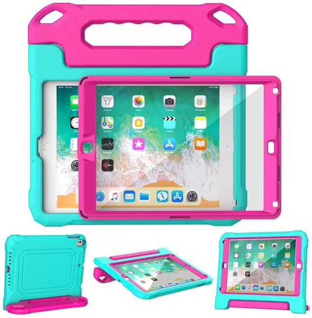 Screen Protector: The front cover of the iPad 9.7 inch 6th/5th generation kids case includes a built-in screen protector to prevent scratches and dirt while maintaining sensitivity ^^ Built-in
