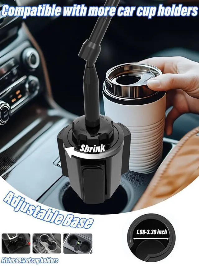 Mount Base]: The cup holder base for the tablet mount has a diameter range extending from 1.96 inches to 3.39 inches (5085 mm). Designed with a three-sided expansion mechanism, this heavy-duty car cup tablet holder base provides triangular support for the cup tablet stand, ensuring it remains securely locked in place even on rough roads or during sudden braking.