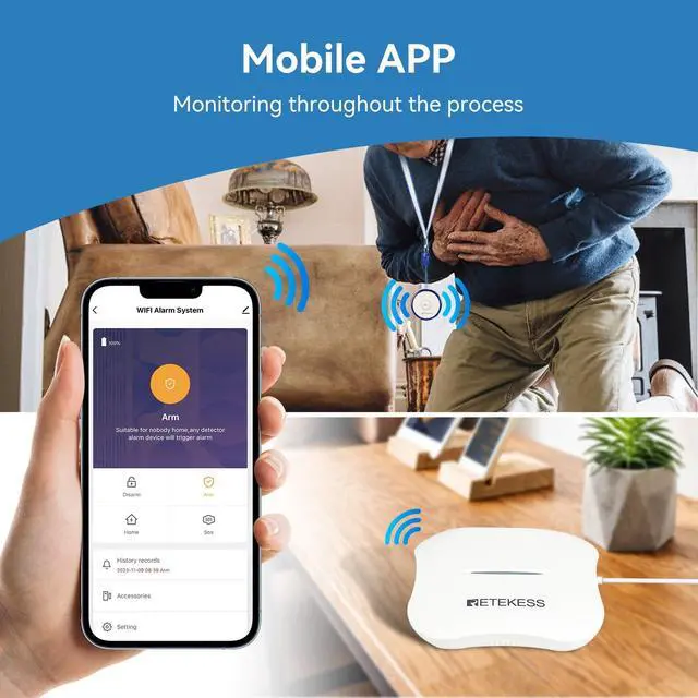 APP remote monitoring; wireless calling system can send real-time updates to your mobile APP; so you can stay informed of family member's condition and respond quickly to provide the best care ^^ Wireless mobile host; host is equipped with built-in battery; allowing you to move it without worrying about power; with this feature; you can ensure that you always receive a signal ^^ Expandable; the call button is expandable; up to 24 buttons; you can add more call buttons to meet the needs of various different usage scenarios ^^ Wireless function; even if you are in another cityyour smartphone can receive alarm notifications from call button ^^ Low battery reminder; when the host battery is less than 20%; the APP will push a low battery prompt message; no need to worry about low battery