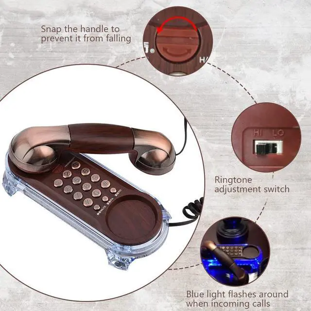 Description: This telephone with antique retro design is a good choice for people who are pursue fashion. Three different can entirely meet your demand. You can put it on the wall or on the desk as you needed. What's more, it also can adjust the rings volume and built-in redial and pause functions. Exquisite craftsmanship, excellent quality!