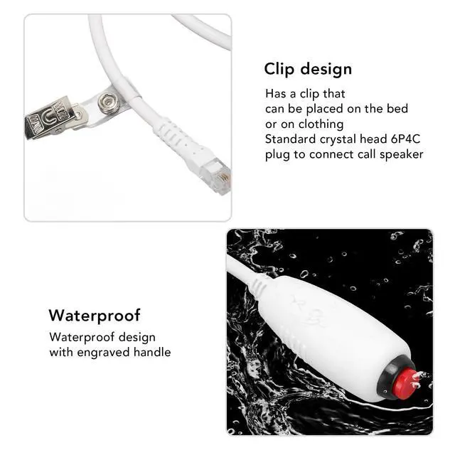 Clip Design: The replacement nurse call cord has a clip that can be placed on the bed and clothing for easy attachment and use.