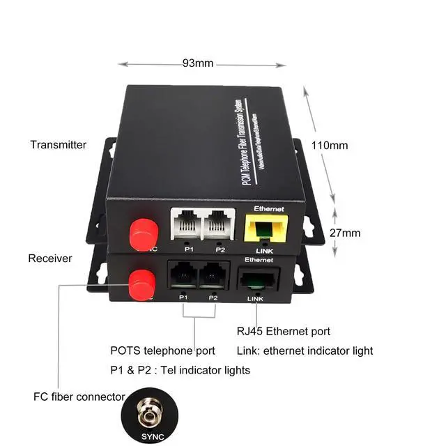 include: 1. 1x 2 channel POTS telephone Transmitter2. 1x 2 channel POTS telephone Receiver3. 1x FREE 3m FC-FC Fiber patch cord4. 2 x External US standard power adapter5. User Manual