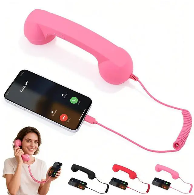 Retro Phone Handset,2026 New Retro Style Type-C Phone Handset,Type-C Retro Telephone Wired Handsets Style Landline Handle Receiver for Cell Mobile Video Conferences,Calls,Meetings (Pink)