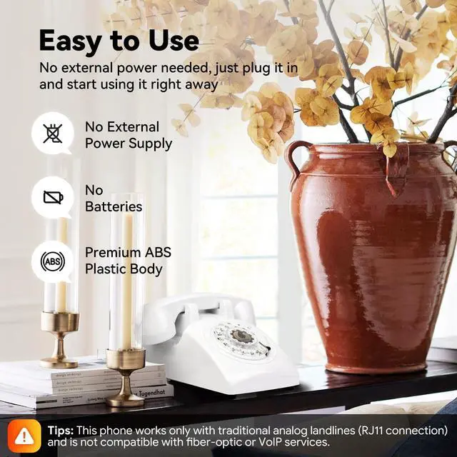 ^^ EASY TO USE: Our 1960S rotary phone is designed to plug directly into your wall jack, allowing for easy and convenient use on any standard home telephone line. no batteries, no external power supply. don't worry about charging or replacing batteries, you can enjoy the simple pleasures of vintage communication without any added stress or frustration.
