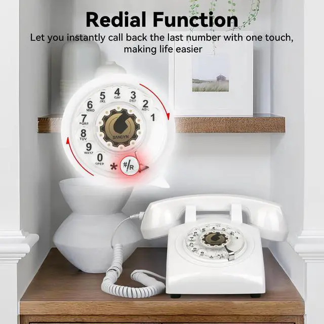 HIGH QUALITY & RINGER ADJUSTABLE: Sangyn old fashioned phone is constructed from high-density ABS engineering plastics and sturdy zinc alloy, make it a reliable choice that will withstand accidental drops and knocks. it also includes a convenient "last number" feature for quickly redialing a recently called contact, as well as adjustable ringer volume to suit any environment.